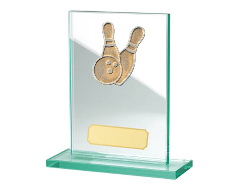 921 Glazen standaard 80x125mm met metalen sport en graveerplaatje met tekst.