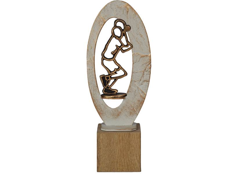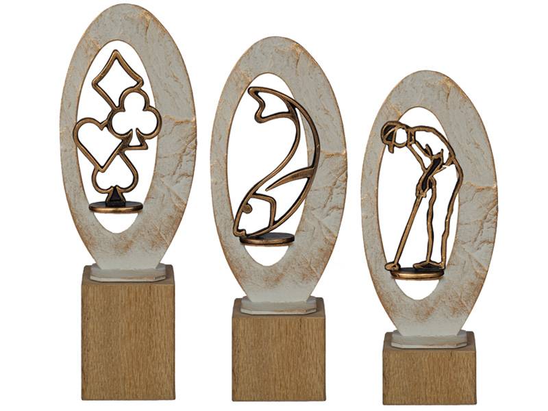 Mooie grote metalen trofee op een fraai blok eiken in 3 maten.