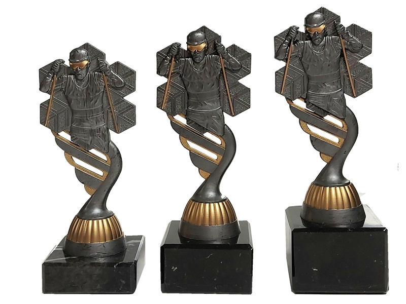 Sportstandaard op zwart marmer inclusief tekstplaatje.