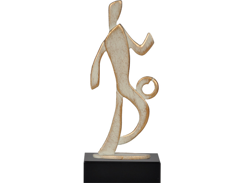 Mooie metalen trofee op zwart blokje met graveerwerk.