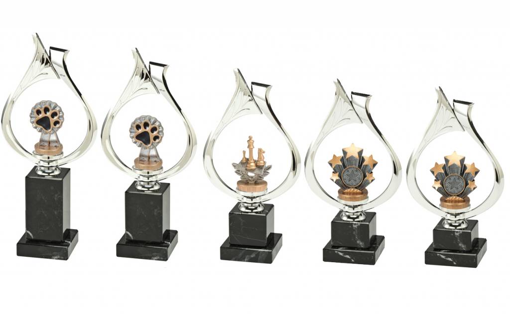 Standaard zilver op zwart marmer met graveerwerk
