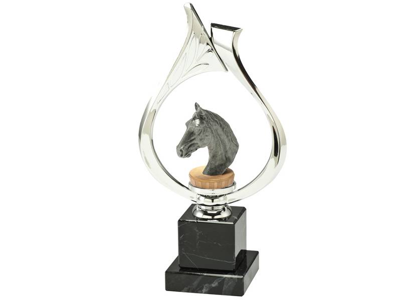 standaard paardenhoofd zilver op zwart marmer met graveerwerk