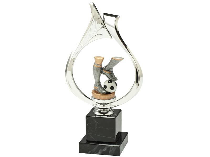 standaard voetbal zilver op zwart marmer in diverse uitvoeringen met graveerwerk