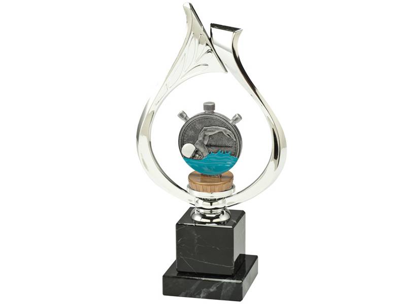 standaard zwemmen zilver op zwart marmer met graveerwerk