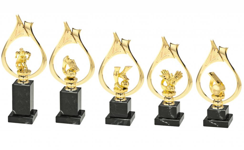 Voetbal standaard goud op zwart marmer met graveerwerk